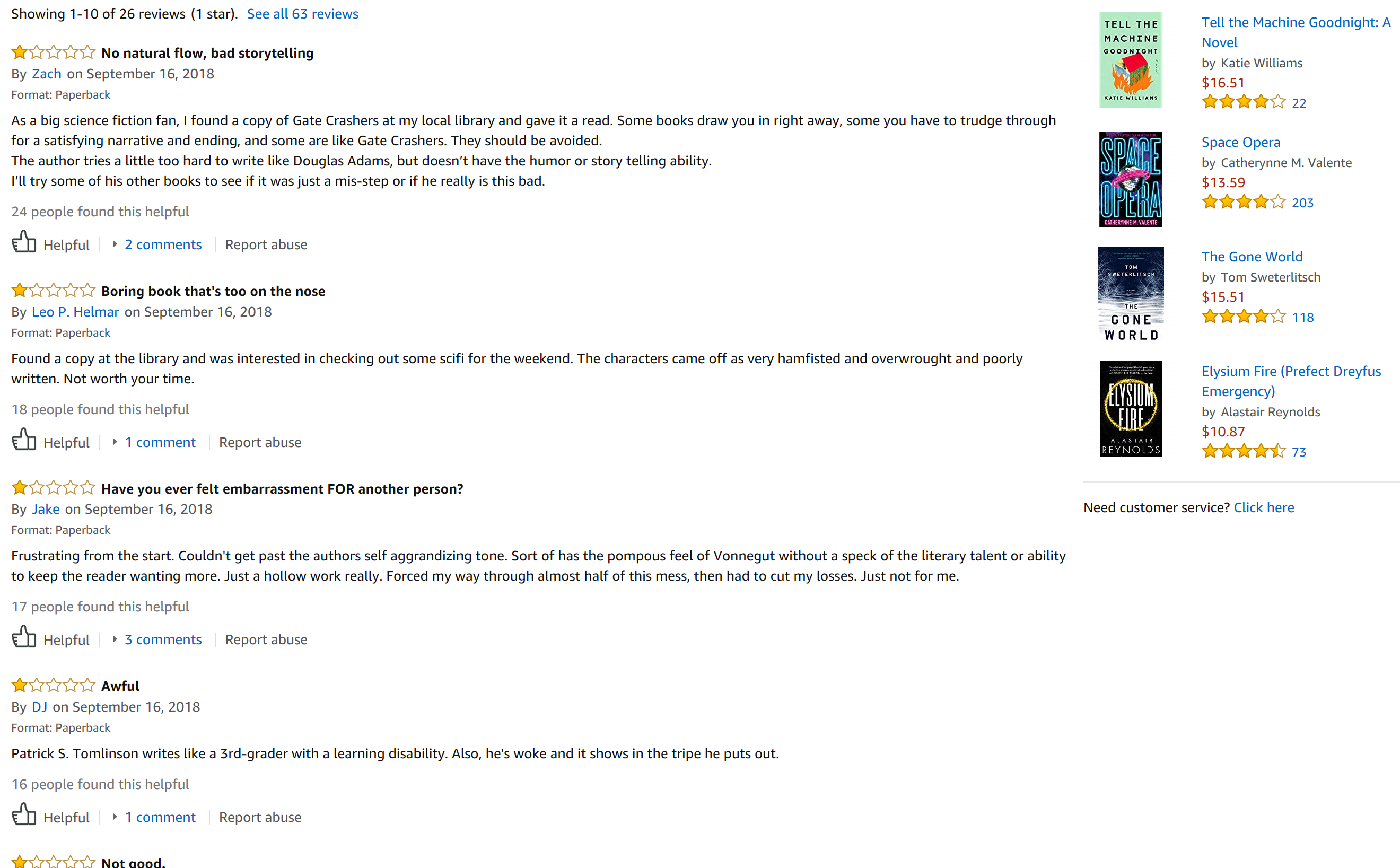 Amazon is only the most visible and popular of the various rating systems, so it’s the trolls’ most obvious target for this sort of attack. Amazon knows fake reviews are a problem, but outside of high-profile examples like Secretary Clinton’s most recent book WHAT HAPPENED, they’ve done virtually nothing to defend the integrity of arguably the world’s most influential literary ratings system, again relying on pig-ignorant algorithms to do the heavy lifting of deciding which reviews are genuine.