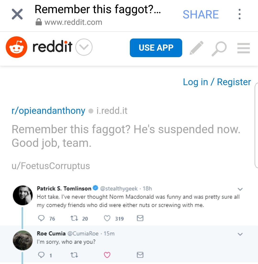 …as stupid as this is going to sound, the whole issue came about because people on an Opie and Anthony subreddit thread were mad I said I’ve never personally found Norm Macdonald funny. Random, I know, but here we are. From then on, my account was deliberately targeted for harassment and mass reporting attacks, including at least four fake accounts all run by the user on the above thread who bragged about being “on my sixth account.”