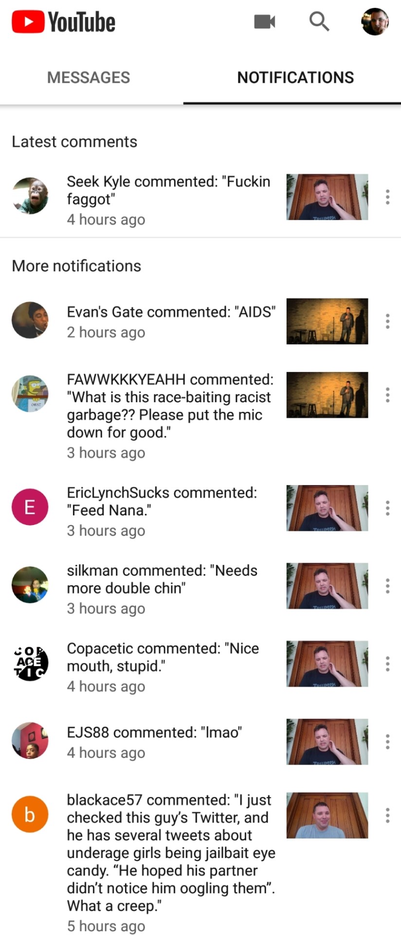 For my part, this group of cyberbullies continued to press their attack on my YouTube channel…